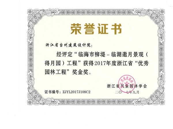 臨海市靈湖柳堤-靈湖邀月景觀工程獲2017浙江省“優(yōu)秀園林工程”獎(jiǎng)金獎(jiǎng)
