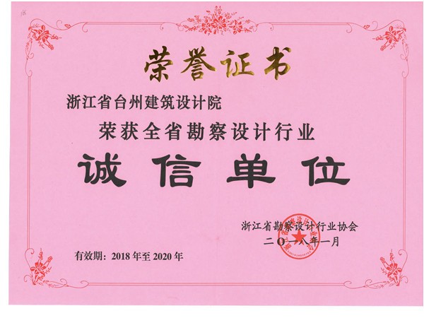 臺(tái)州建筑設(shè)計(jì)院榮獲全省勘察設(shè)計(jì)行業(yè)誠信單位